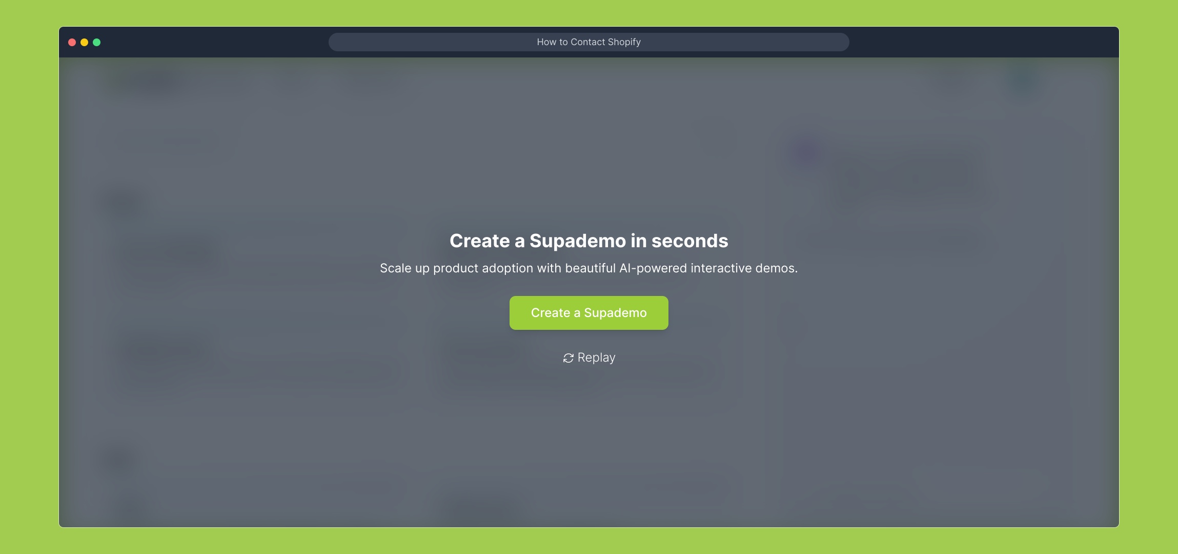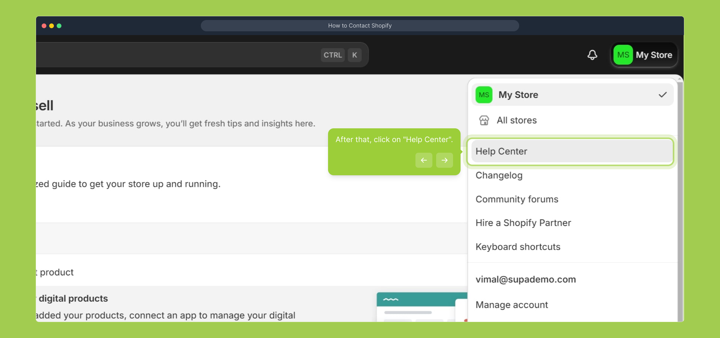 This interactive demo/guided walkthrough on How to Contact Shopify was created using Supademo.