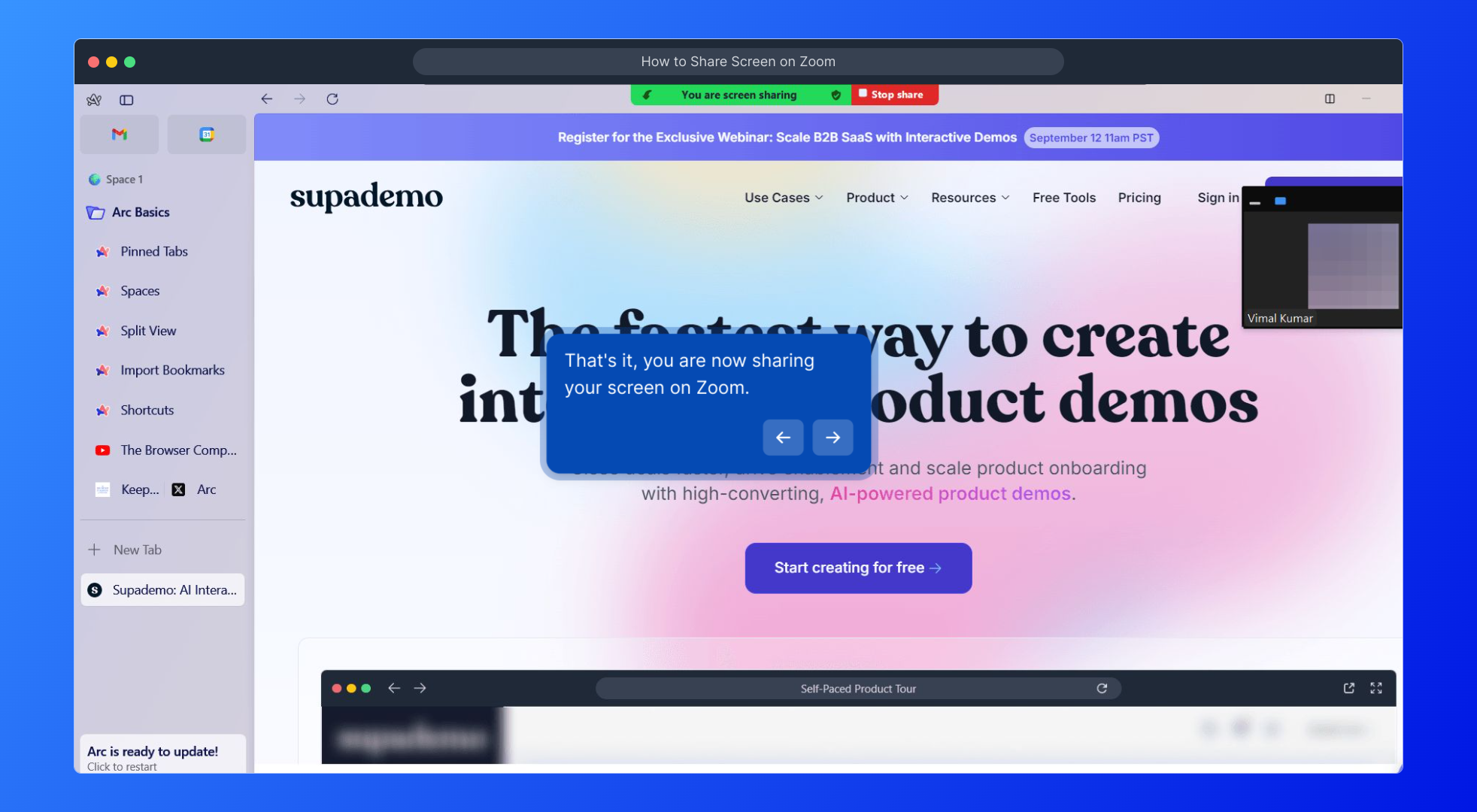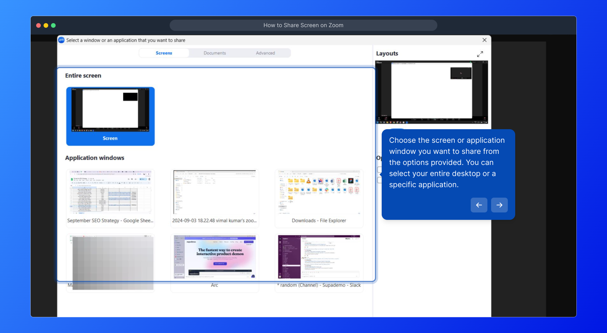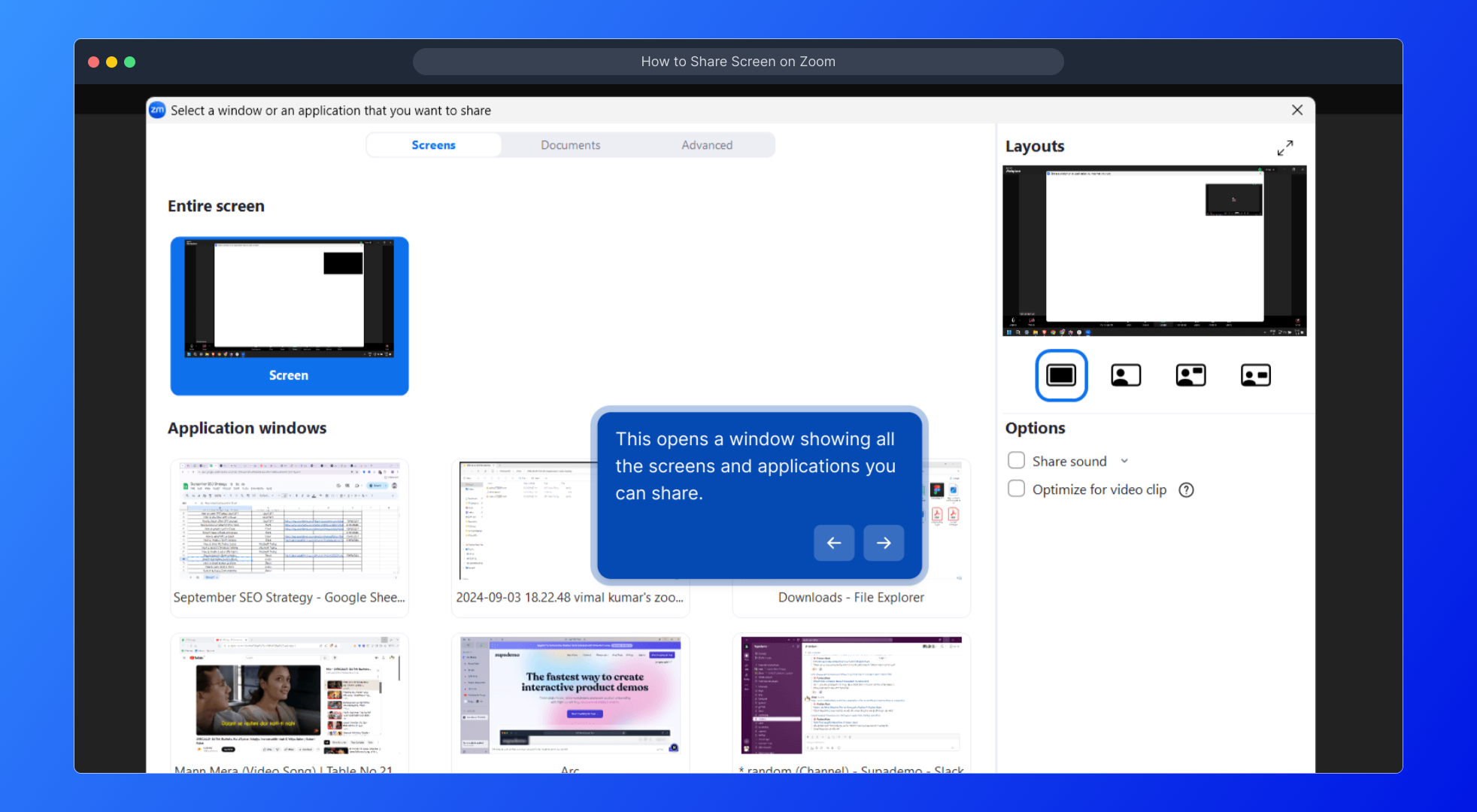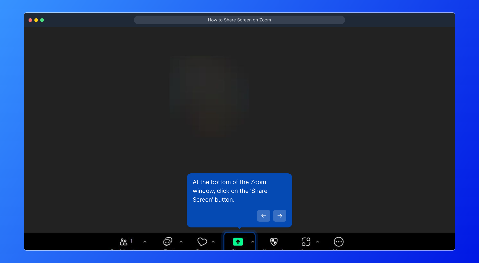 This interactive demo/guided walkthrough on How to Share Screen on Zoom was created using Supademo.