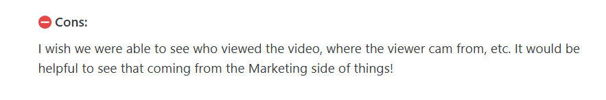 Even though 5-minutes are enough to record feedback or quick overview videos, longer videos like internal team training or courses aren't supported. The 5-minute limit forces you to break longer presentations into multiple segments. This creates a disconnected experience for viewers and makes video management difficult.