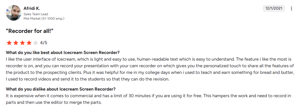 Icecream Screen Recorder is a user-friendly screen recording tool designed for educators, trainers, and business professionals. With an intuitive interface, webcam overlay support, and AI-powered noise reduction, it balances ease of use with reliable performance.